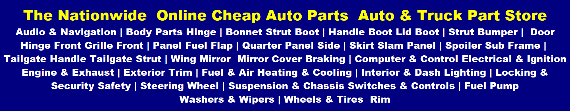 Discover Auto & Truck Parts Accesories The Nationwide On-Line Auto & Truck Part Store Audio & Navigation Body Parts Hinge Bonnet Strut Boot Handle Boot Lid Boot NNewStrut Bumper Door Hinge Front Grille Front Panel Fuel Flap Quarter Panel Side Skirt Slam Panel Spoiler Sub frame Tailgate Tailgate Handle Tailgate Strut Wing Wing Mirror Wing Mirror Cover Braking Computer & Control Electrical & Ignition Engine & Exhaust Exterior Trim Fuel & Air Heating & Cooling Interior & Dash Lighting Locking & Security Safety Steering Suspension & Chassis Switches & Controls Fuel PumpWashers & Wipers Wheels & Tires Rim Surplus Salvage Supplier salvage parts. Learn More With Great prices on Auto & Truck Parts Accesories The Nationwide On-Line Auto & Truck Part Store Audio & Navigation Body Parts Hinge Bonnet Strut Boot Handle Boot Lid Boot NNewStrut Bumper Door Hinge Front Grille Front Panel Fuel Flap Quarter Panel Side Skirt Slam Panel Spoiler Sub frame Tailgate Tailgate Handle Tailgate Strut Wing Wing Mirror Wing Mirror Cover Braking Computer & Control Electrical & Ignition Engine & Exhaust Exterior Trim Fuel & Air Heating & Cooling Interior & Dash Lighting Locking & Security Safety Steering Suspension & Chassis Switches & Controls Fuel PumpWashers & Wipers Wheels & Tires Rim Surplus Salvage Supplier accessories and parts for Club Car, EZGO, and Yamaha. Lift kits, wheels and tires, seats, cargo boxes, chrome and stainless These Top Searches. Explore Auto & Truck Parts Accesories The Nationwide On-Line Auto & Truck Part Store Audio & Navigation Body Parts Hinge Bonnet Strut Boot Handle Boot Lid Boot NNewStrut Bumper Door Hinge Front Grille Front Panel Fuel Flap Quarter Panel Side Skirt Slam Panel Spoiler Sub frame Tailgate Tailgate Handle Tailgate Strut Wing Wing Mirror Wing Mirror Cover Braking Computer & Control Electrical & Ignition Engine & Exhaust Exterior Trim Fuel & Air Heating & Cooling Interior & Dash Lighting Locking & Security Safety Steering Suspension & Chassis Switches & Controls Fuel PumpWashers & Wipers Wheels & Tires Rim Surplus Salvage Supplier salvage parts. Auto & Truck Parts Accesories The Nationwide On-Line Auto & Truck Part Store Audio & Navigation Body Parts Hinge Bonnet Strut Boot Handle Boot Lid Boot NNewStrut Bumper Door Hinge Front Grille Front Panel Fuel Flap Quarter Panel Side Skirt Slam Panel Spoiler Sub frame Tailgate Tailgate Handle Tailgate Strut Wing Wing Mirror Wing Mirror Cover Braking Computer & Control Electrical & Ignition Engine & Exhaust Exterior Trim Fuel & Air Heating & Cooling Interior & Dash Lighting Locking & Security Safety Steering Suspension & Chassis Switches & Controls Fuel PumpWashers & Wipers Wheels & Tires Rim Surplus Salvage Supplier Albuquerque, NM - New Mexico Anchorage, AK - Alaska Ashburn, ME - Maine Atlanta, GA - Georgia Amarillo, TX - Texas Austin, Texas - Texas Baltimore, MD - Maryland Barrington, RI - Rhode Island Birmingham, AL - Alabama Boise, ID - Idaho Boston, MA - Massachusetts Buffalo, NY - New York Charleston, SC - South Carolina Cheyenne, WY - Wyoming Chicago, IL - Illinois Cincinnati ,OH - Ohio Cleveland, Ohio - Ohio Columbus, OH - Ohio Dallas, TX - Texas Denver, CO - Colorado Des Moines , IA - Iowa Detroit, MI - Michigan Duluth, MN - Minnesota El Paso, TX - Texas Essex Junction, VT - Vermont Flagstaff, AZ - Arizona Fort Wayne, ID - Idaho Fort Worth ,TX - Texas Harris Burg, PA - Pennsylvania Hartford, CT - Connecticut Helena, MT - Montana Houston, TX - Texas Honolulu, HI - Hawaii Huntington, WV - West Virginia Indianapolis, ID - Indiana Jackson, MS - Mississippi Jacksonville, FL - Florida Kansas City, MO - Missouri Knoxville, TN - Tennessee Las Vegas, NV - Nevada Lexington, KY - Kentucky Little Rock, AR - Arkansas Los Angeles, CA - California Louisville, KY - Kentucky Mackinaw City, MI - Michigan Madison, WI - Wisconsin Memphis, TN - Tennessee Miami, FL - Florida Manchester, NH - New Hampshire Milwaukee, WI - Wisconsin Minneapolis, MN - Minnesota Mobile, AL - Alabama Nashville, TN - Tennessee New Orleans, LA - Louisiana Atlantic City, NJ - New Jersey New York, NY - New York Norfolk, VA - Virginia Oklahoma City, OK - Oklahoma Omaha, NE - Nebraska Orlando, FL - Florida Philadelphia, PA - Pennsylvania Phoenix, AZ - Arizona Pierre, SD - South Dakota Pittsburgh, PA - Pennsylvania Portland, ME - Minnesota Portland, OR - Oregon Raleigh, NC - North Carolina Rapid City, SD - South Dakota Reno, NV - Nevada Richmond, VA - Virginia Rochester, NY - New York St Louis, MO - Missouri Salt Lake City, UT - Utah San Antonio, TX - Texas San Diego, CA - California San Francisco, CA - California Seattle, WA - Washington Spokane, WA - Washington Springfield, IL - Illinois Springfield, MO - Missouri Tampa , FL - Florida Toledo, OH - Ohio Topeka, KS - Kansas Tulsa, OK - Okalahoma Washington, DC - District of Columbia Parts Accesories The Nationwide On-Line Auto & Truck Part Store Audio & Navigation Body Parts Hinge Bonnet Strut Boot Handle Boot Lid Boot NNewStrut Bumper Door Hinge Front Grille Front Panel Fuel Flap Quarter Panel Side Skirt Slam Panel Spoiler Sub frame Tailgate Tailgate Handle Tailgate Strut Wing Wing Mirror Wing Mirror Cover Braking Computer & Control Electrical & Ignition Engine & Exhaust Exterior Trim Fuel & Air Heating & Cooling Interior & Dash Lighting Locking & Security Safety Steering Suspension & Chassis Switches & Controls Fuel Pump Surplus Salvage Supplier Auto & Truck Parts Accesories The Nationwide On-Line Auto & Truck Part Store Audio & Navigation Body Parts Hinge Bonnet Strut Boot Handle Boot Lid Boot NNewStrut Bumper Door Hinge Front Grille Front Panel Fuel Flap Quarter Panel Side Skirt Slam Panel Spoiler Sub frame Tailgate Tailgate Handle Tailgate Strut Wing Wing Mirror Wing Mirror Cover Braking Computer & Control Electrical & Ignition Engine & Exhaust Exterior Trim Fuel & Air Heating & Cooling Interior & Dash Lighting Locking & Security Safety Steering Suspension & Chassis Switches & Controls Fuel PumpWashers & Wipers Wheels &
